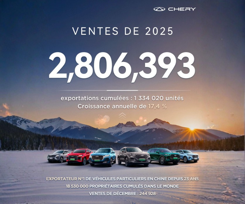 2,8 millions de véhicules vendus, une domination écrasante à l’export et une mutation technologique sans précédent : Chery Group boucle une année 2025 historique et s’impose comme le nouveau chef de file de l’industrie automobile globale.