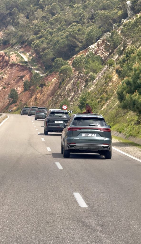 Le deuxième jour a mis à l’épreuve la polyvalence des TIGGO 7 Pro et 8 Pro PHEV. Entre Tanger, Martil, Tétouan et M’Diq, le parcours a alterné entre circulation urbaine dense et routes sinueuses. C’est ici que l’hybride rechargeable prend tout son sens : la récupération d’énergie au freinage et la réactivité du couple électrique permettent de naviguer dans le trafic avec une aisance déconcertante, tout en préservant précieusement le précieux carburant pour les segments de liaison.