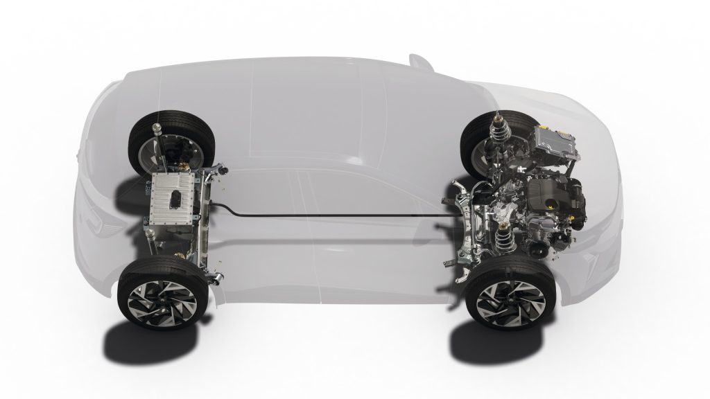 - Le groupe motopropulseur : Il combine un bloc essence 4 cylindres 1.8 L de 109 ch (80 kW) à deux moteurs électriques (un « e-moteur » de 36 kW et un démarreur haute tension HSG de 15 kW).